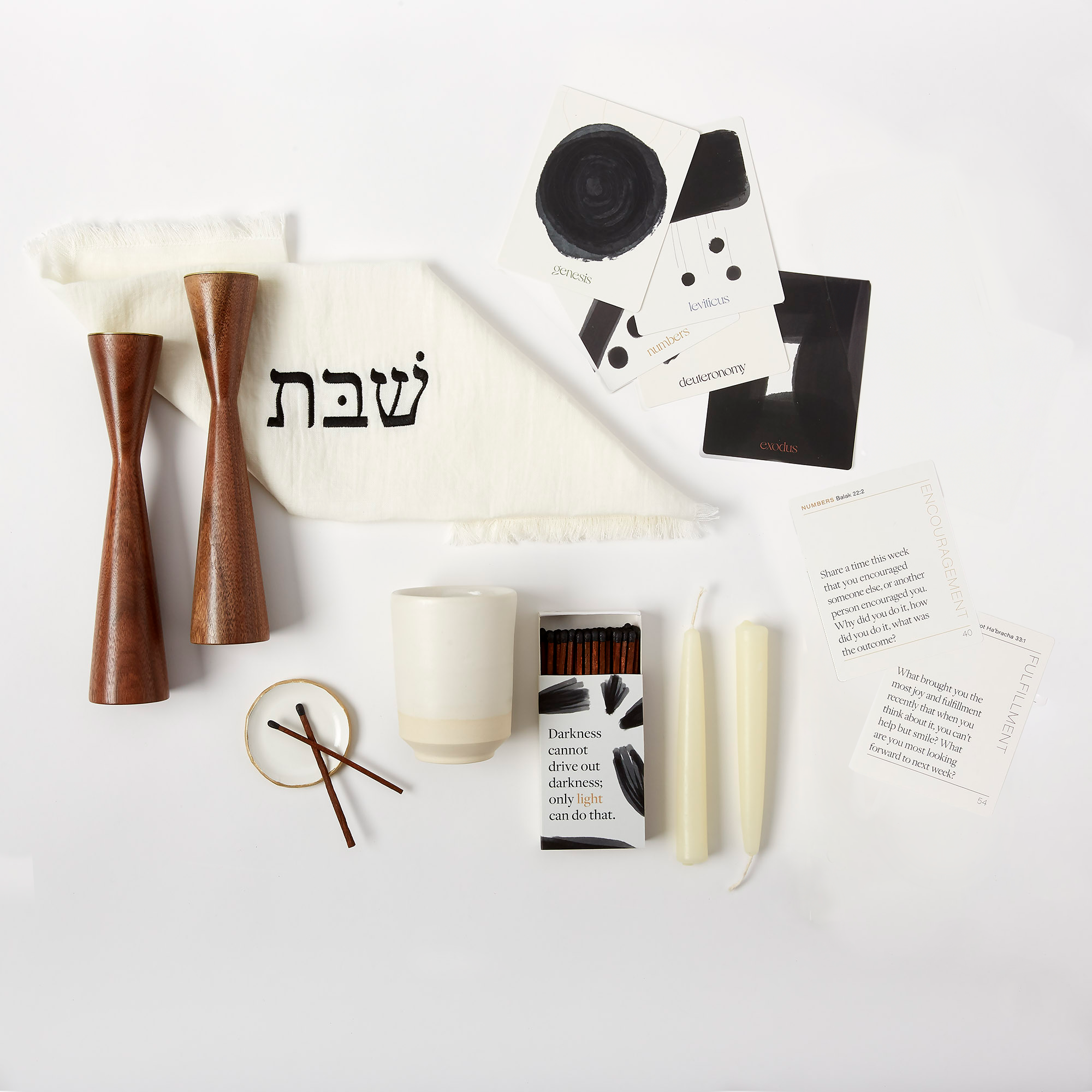 Our Shabbat box is a curated mix of beautiful ritual objects and accessible guiding materials intended to start your collection, or to serve as a beautiful addition to your family heirlooms and traditions.
