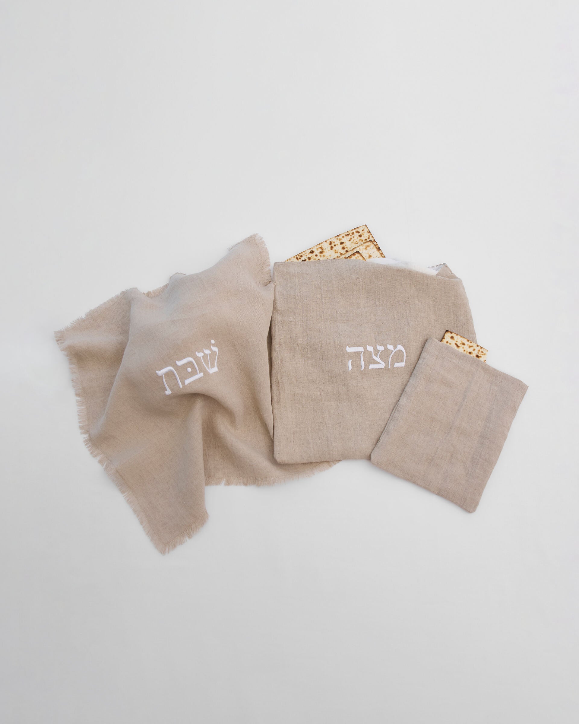 Whether it's your Passover Seder Table or your Shabbat table all year round, we've got you covered. This set includes our best-selling linen challah cover, a layered linen matzah bag and matching afikomen pouch. All made from premium linen, this set brings a fresh look to your table.
