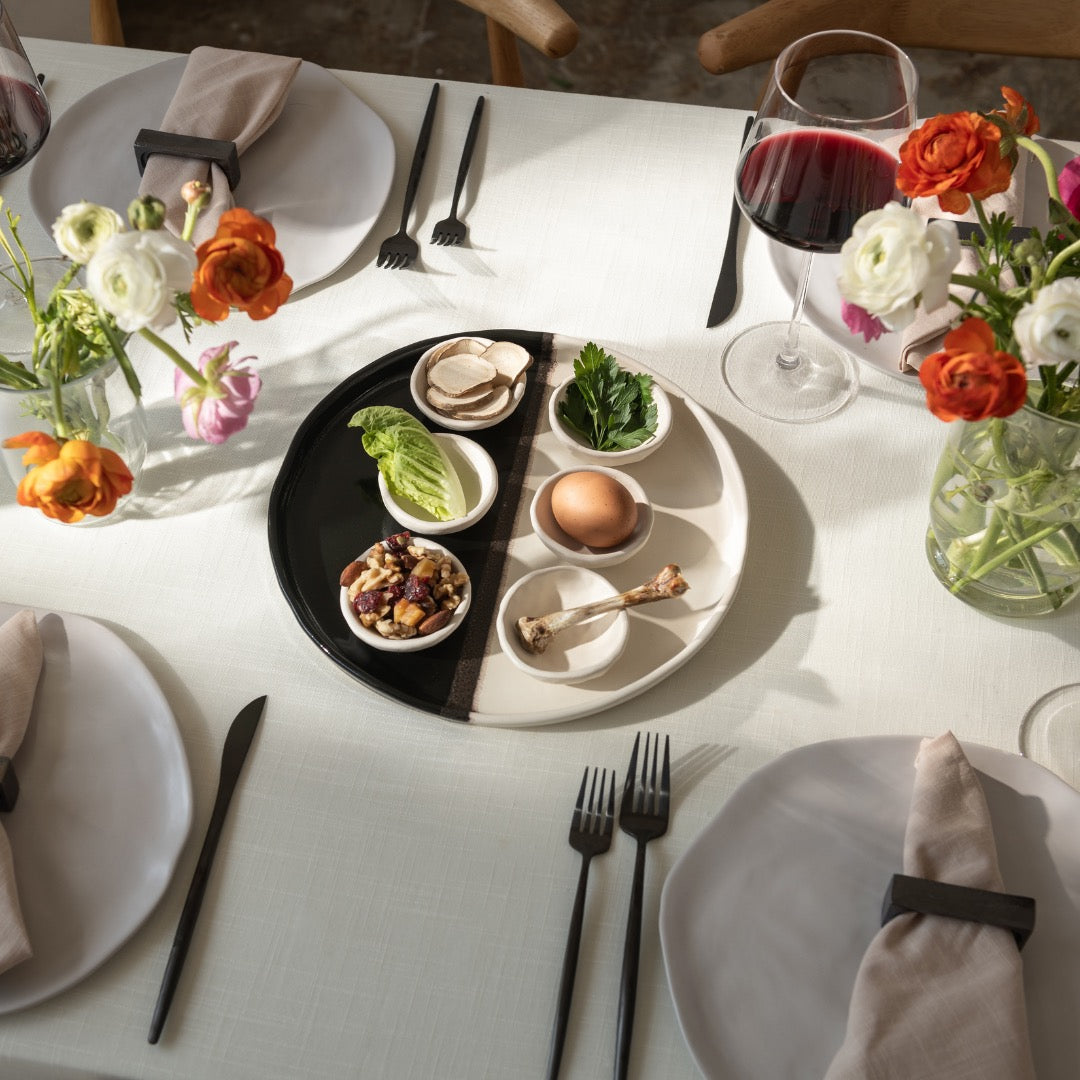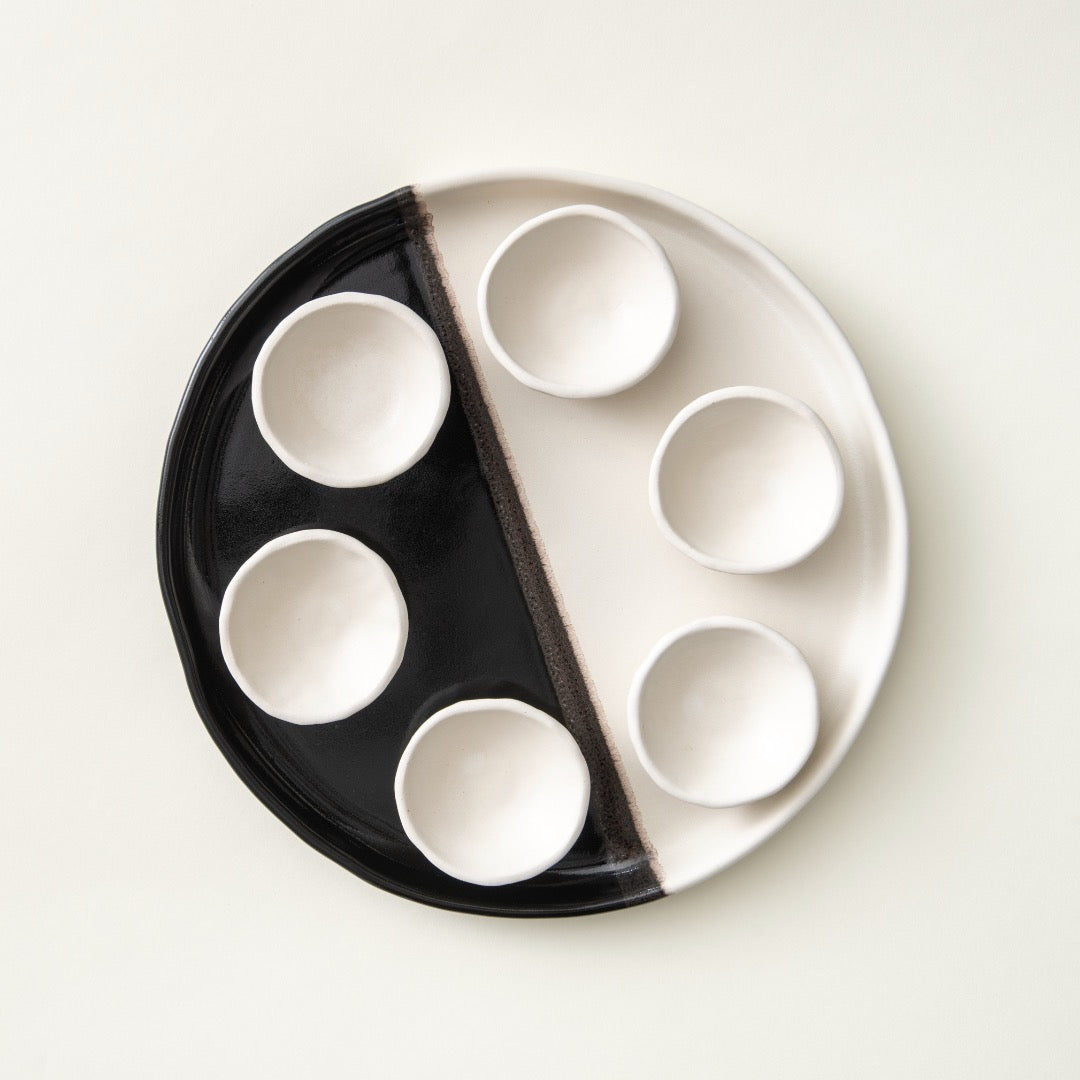 Make Passover your own with our handmade ceramic Seder plate. Inspired by the iconic black-and-white cookie, its glaze offers a subtle nod to tradition with a modern twist. Each piece is carefully crafted as functional art, making it a striking centerpiece and a fresh take on the holiday table