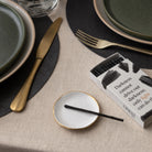 Handcrafted ceramic match dish featuring a crisp white finish and gleaming gold base. Designed to complement Shabbat candle lighting, it offers a safe, stylish place to rest your matches.