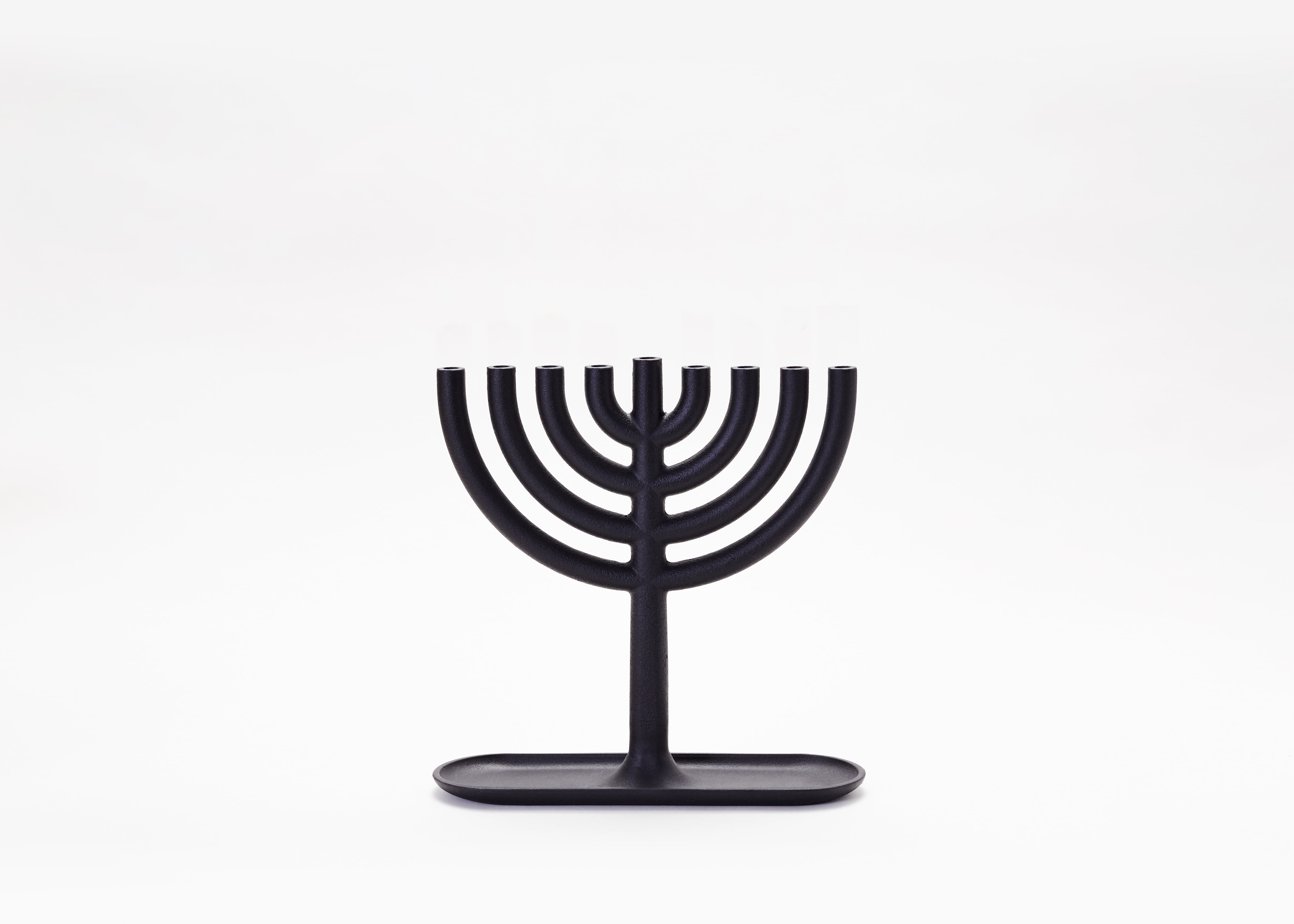 This cast iron menorah makes a bold, modern statement. Designed as a single seamless piece with a built-in tray to catch wax drips, its clean lines and substantial weight speak to enduring quality. Minimal yet striking, it’s the kind of piece that feels at home on any table- effortlessly balancing beauty and purpose.