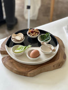 Make Passover your own with our handmade ceramic Seder plate. Inspired by the iconic black-and-white cookie, its glaze offers a subtle nod to tradition with a modern twist. Each piece is carefully crafted as functional art, making it a striking centerpiece and a fresh take on the holiday table